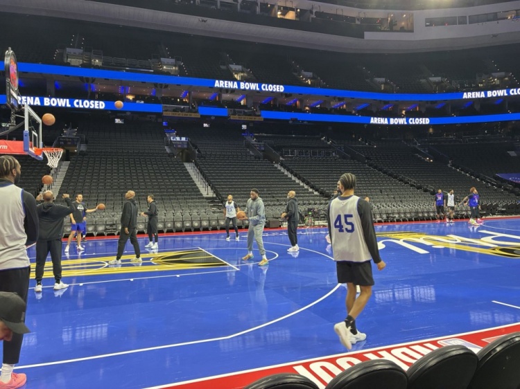 76人隊NBA杯主場地板顏值如何?球員們已經在NBA杯的球場練上了!