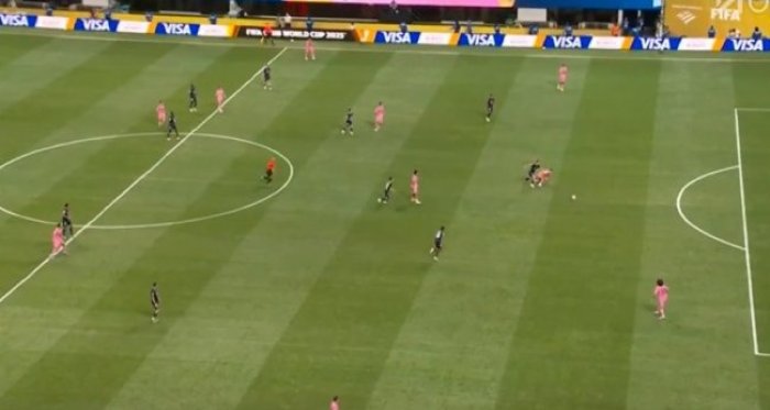 邁阿密國際出場陣容:19-烏斯塔里、18-阿爾巴、37-法爾肯、32-阿倫、57-韋甘特、8-特拉斯科、5-布斯克茨、55-小雷東多、21-阿連德、9-蘇亞雷斯、10-梅西