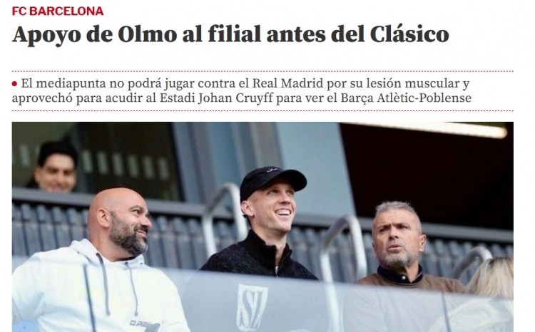他在看臺上觀看了比賽全程,并與球迷進行了合影。報道指出,一線隊球員觀戰B隊比賽已日益普遍,這對年輕球員是種激勵。奧爾莫此前還曾現場支持過巴薩籃球隊對陣薩拉基利斯考納斯的歐聯賽事,此舉被視為他熱愛巴薩的表現。
