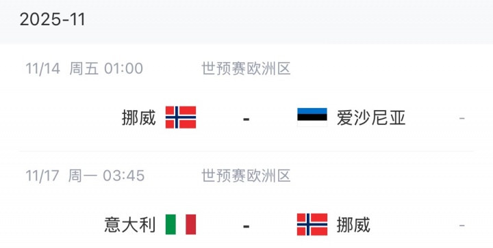 挪威剩余賽程: