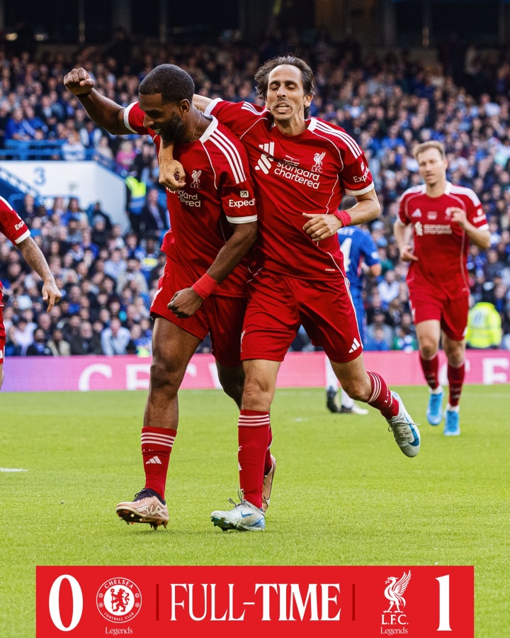 10月12日訊 利物浦傳奇隊在客場1-0擊敗了切爾西傳奇隊,荷蘭前國腳巴貝爾打入制勝球,進球后他用模仿若塔慶祝動作的方式向他致敬。