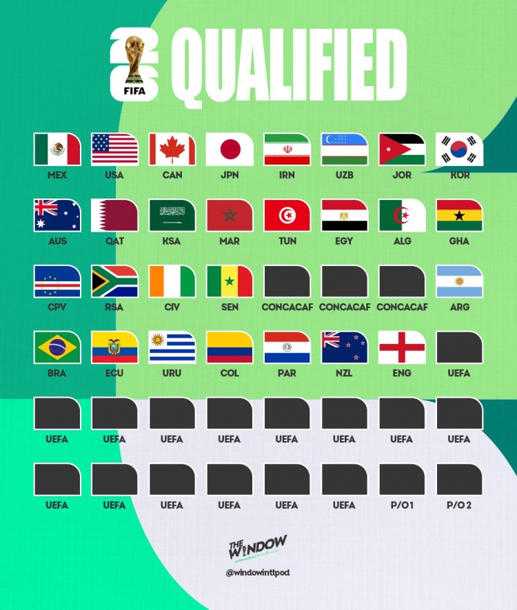 目前已有28支球隊獲得了世界杯參賽券,本月還有14支球隊將通過預選賽晉級世界杯,剩余6個參賽名額則將通過明年3月的附加賽決出。