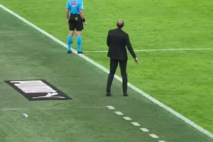 球迷實(shí)拍!阿萊格里在場邊呼叫球員登場